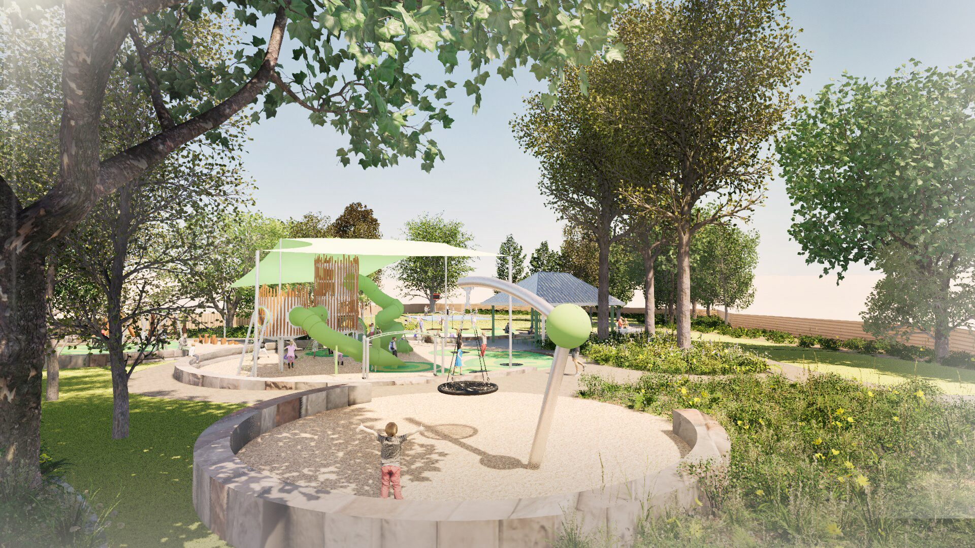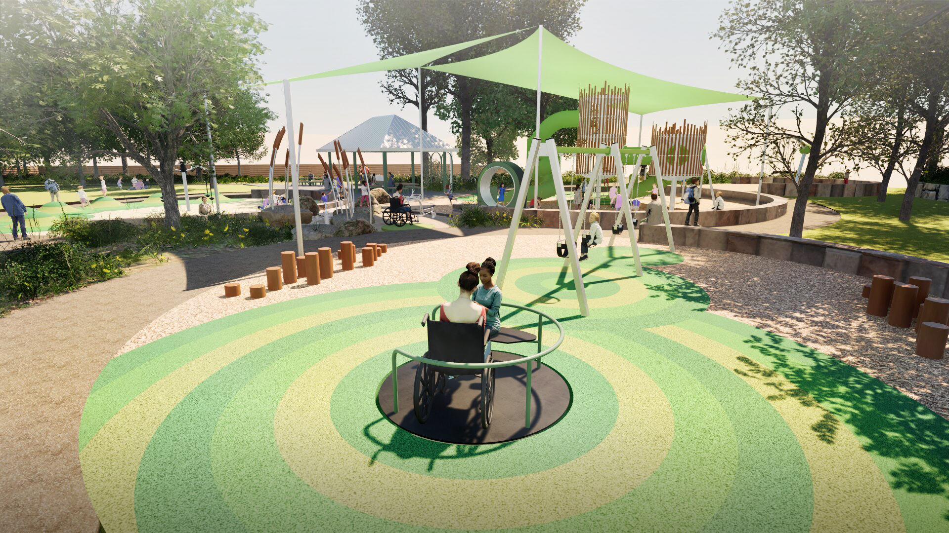 This design brings together climbing, swinging, spinning, and sensory experiences to create a space that’s fun, inclusive, and shaped by you—the community who will enjoy it.